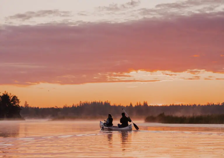 Verken de omliggende meren en afgelegen eilandjes met onze Canadese Long Canoes, die voor je klaar liggen aan het meer.